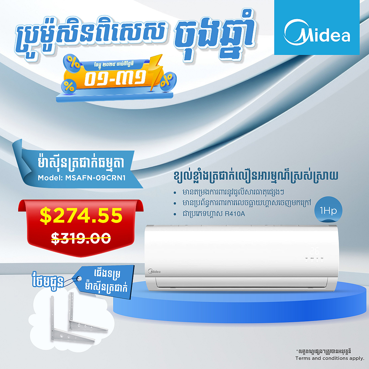 Midea Air Conditioner (Non-inverter ,wall-mounted split 1HP)