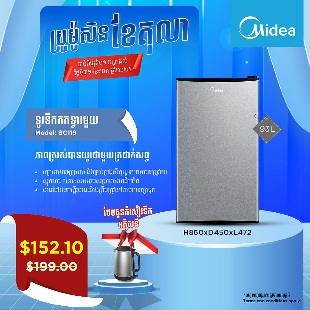 Midea Refrigerator (Non-inverter,Single door ,93L)