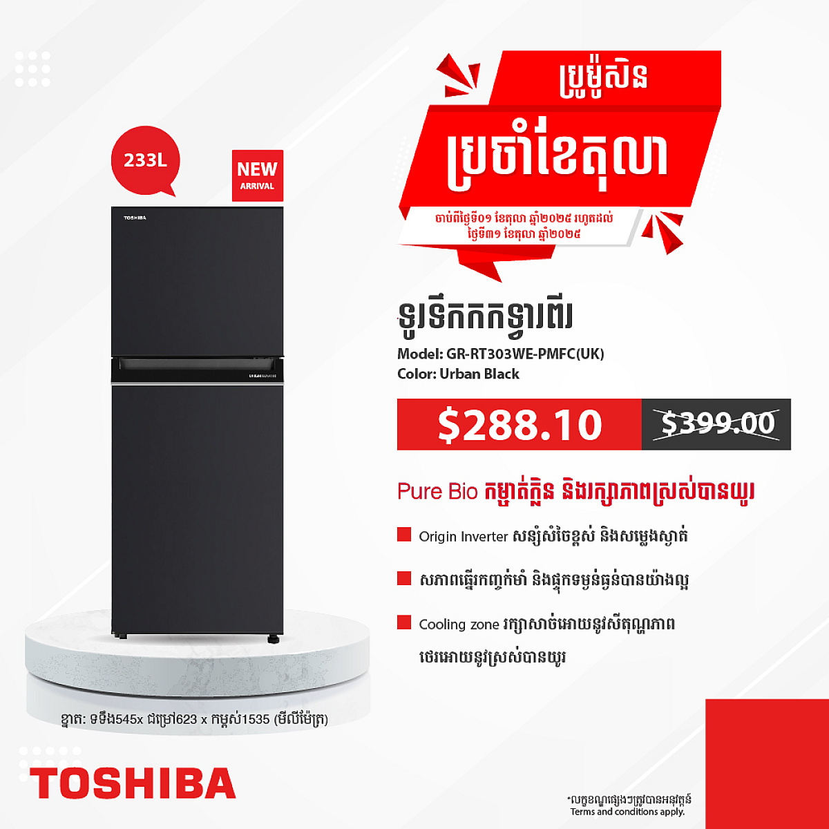 Toshiba Refrigerator (Inverter,Double door,233L)
