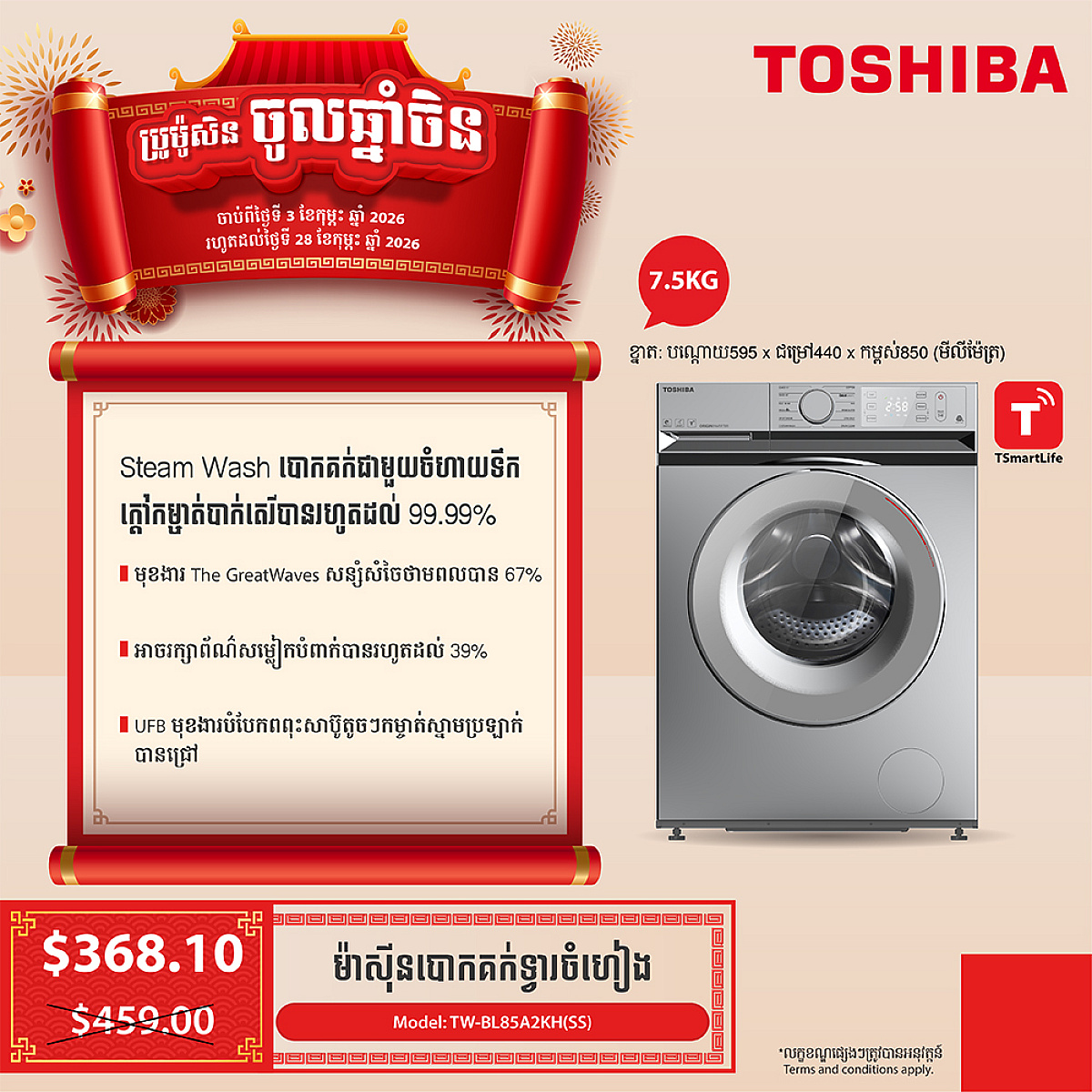 Toshiba Washing Machine (Inverter ,Front loading 7.5KG)